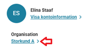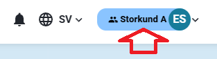 - Acceptera inbjudan och byt till ditt organisationskonto-Tryck på inbjudningslänken i det mail du får från huvudanvändaren.-I Online Filing SE, tryck på dina initialer högst upp till höger. Välj ”Byt konto”.Tryck sedan på det konto du vill vara inloggad i.När du är inloggad i organisationskontot syns detta som en färgad yta bakom dina initialer högst upp till höger.