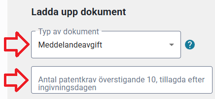 -Välj bilagatyp Meddelandeavgift / Grant fee.