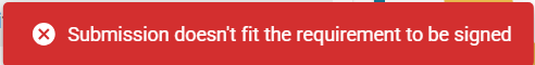 Om bilagor är för stora (max 500mB per inlämning), eller innehåller metadata (t.ex. elektroniska signaturer) kan detta leda till problem med bilagan och göra att inlämningspaketet inte paketeras som det ska. Detta märks antingen redan när man bifogar bilagan, eller när man försöker signera inlämningen. Stora filer och/eller metadata kan leda till att hela inlämningen inte går att signera, och att detta felmeddelande syns.